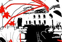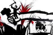 КОЛІЇВЩИНА 2011 рімейк на однойменний офорт Василя Касіяна. настінний розпис, офорт Василя Касіяна "Коліївщина", тексти, надруковані на папері, на...