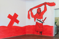 КОЛІЇВЩИНА: REMANUFACTURE 2013 настінний розпис, тексти та зображення, надруковані на папері, наклеєні на стіні. Виставка Українські новини, Центр Суча...