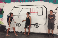 change language ТРАНЗИТ 2022 Настінний розпис, акрил, маркери, продряпування на стіні 11,5 х 5,5м Настінний розпис "Транзит" присвячується міжнародному в...