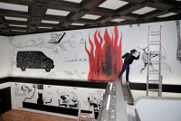 change language КОВЧЕГ 2015 Настінний розпис 10.40 х 4,2 м Vozdvizhenka Arts House, Київ вигляд експозиції у 3D Робота "Ковчег-2015" присвячує...
