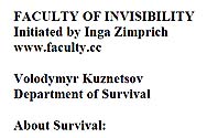 ФАКУЛЬТЕТ НЕВИДИМОСТІ ініційований Інгою Цімпріх www.faculty.cc Володимир Кузнецов Кафедра Виживання Про Виживання Три способи виживання: Н...